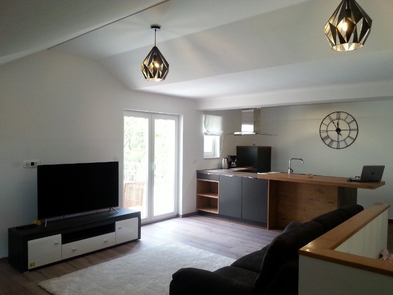 EXCELLENT location - villa in second line of the beach. Walking zone, quiet environment. The house has 3 modern apartments with a capacity of 2 - 5 persons. Higher standard! • Location: beach 50m, center 50m, restaurant 100m, shop 100 m • Apartments: Studio 2 persons, 2x 1 person 2-4 persons • Equipment: air conditioning, SAT TV, hairdryer, SEF, wireless internet • balcony, terrace, sea view • Parking: Private