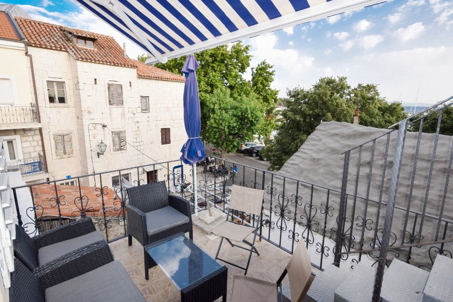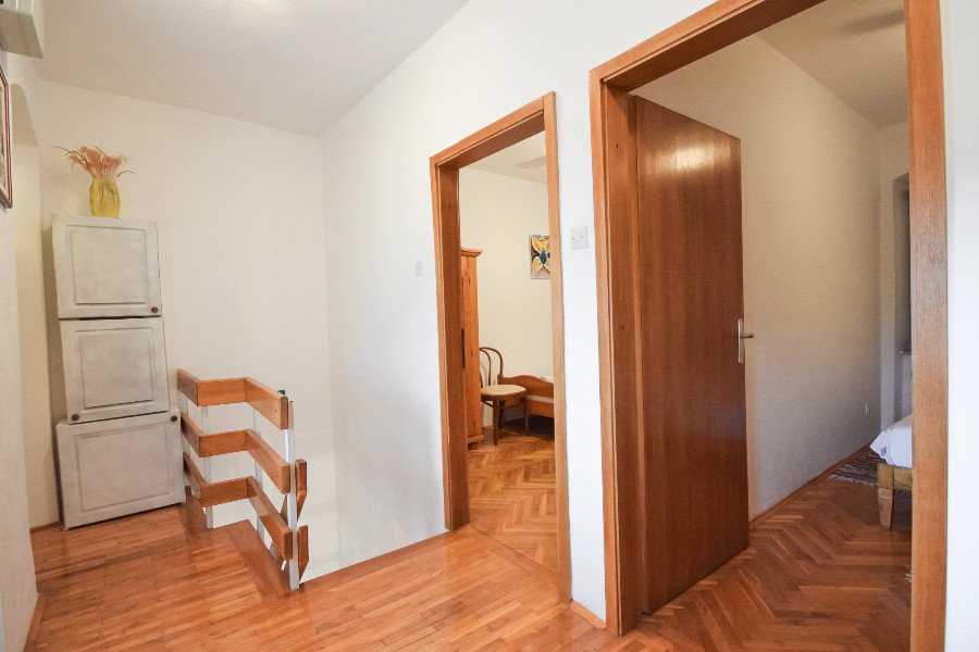 Ideal house for rent for families with children or a group of young people. House is situated on the waterfront in Baska Voda, only 50 m from the next beach. The house can accommodate up to 10 people. It has 4 bedrooms, 2 extra beds, 3 bathrooms, large living room with kitchen. Large terraces provide a breathtaking view of the sea. Favorable price!