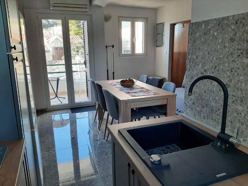 House Ema have nice location in very center of small Brela place. House is only 100 m distance from beach and have only one apartment for rent. Apartment have 2 bedrooms and 2 bathrooms and is appropriate for 5 persons. Price include AC, satTV, wifi, and one parking spot.