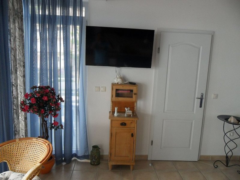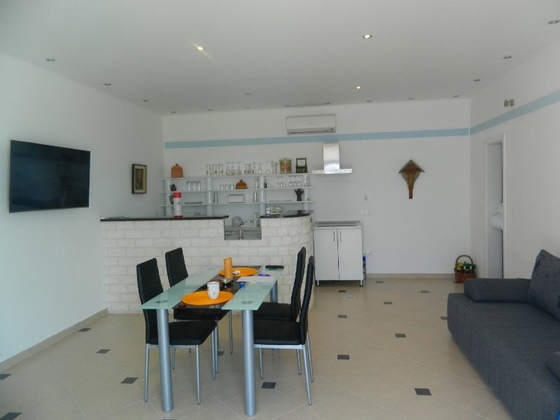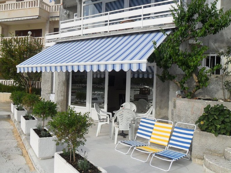 • Location: beach 1m, center 3000m, restaurant, cafe bar 50m, shop 300 m • Unit:, 2 x AP2 + 2 • Equipment: air conditioning, satellite TV, hair dryer,BBQ, wireless internet • balcony, terrace, sea view • Parking: Private