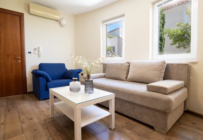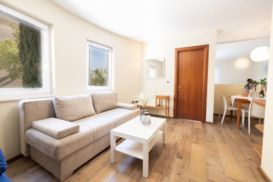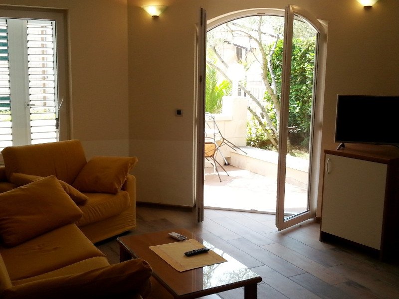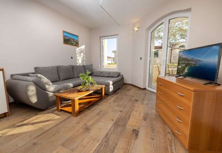 EXCELLENT location - villa in the second row from the beach. Located very close to the center of Brela. The house has 3 beautiful apartments and one lux room with a capacity of 2 - 4 persons. Location without crowds, beautiful beaches. • Location: beach 40m, center 150m, restaurant 60m, cafe bar 60m, shop 100 m Unit:, 3 x AP2 + 2, lux room 2 + 1 Equipment: air conditioning, satellite TV, hairdryer, wireless internet balcony, terrace, sea view Parking: Private