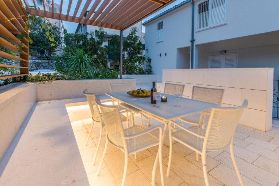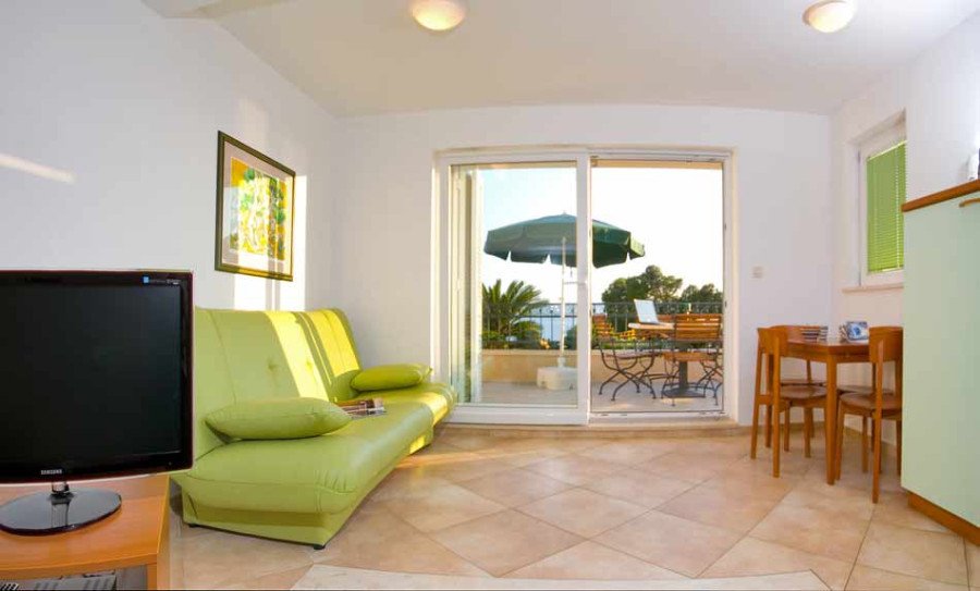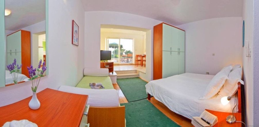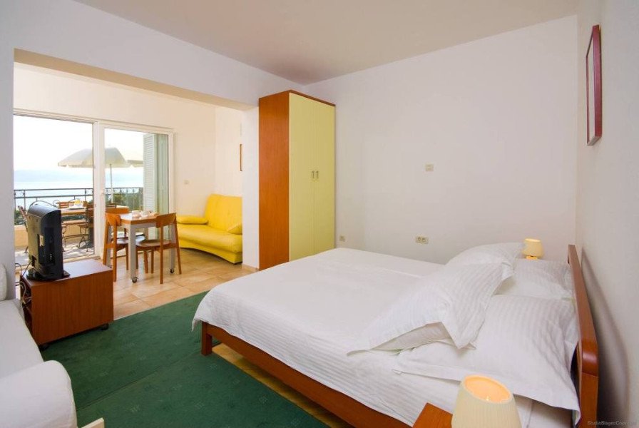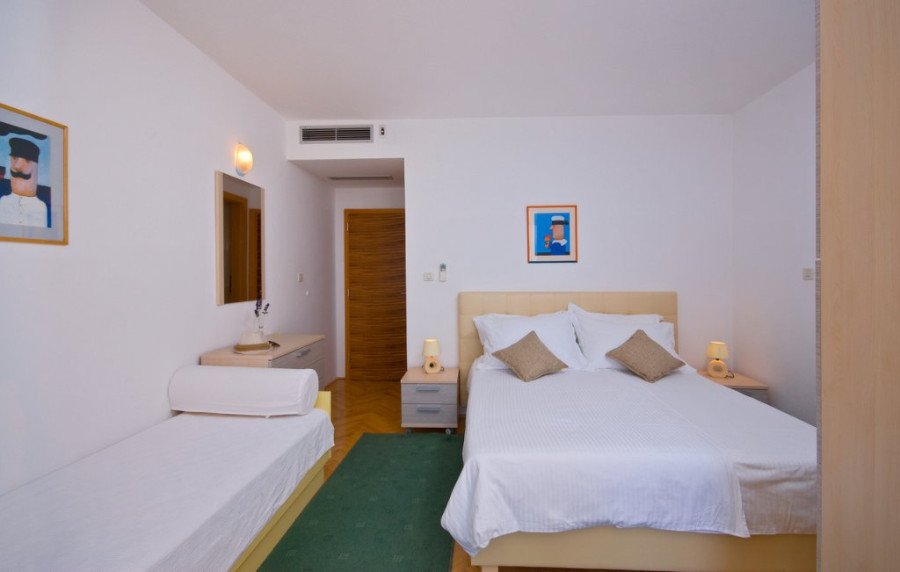 Modernly decorated villa with 9 beautiful apartments. The location of the villa is excellent, only 60m from the beautiful beach and promenade of Brela. The house has apartments for 2-4 people. Buffet breakfast on request. • LOCATION: beach 60m, center 250m, restaurant 50m, cafe bar 60m, shop 60 m • APARTMENTS: 6x ST2 + 2, 2x AP2 + 1, AP1 / 4 • PRICE INCLUDES: air conditioning, satellite TV, hairdryer, safe, wireless internet, parking.