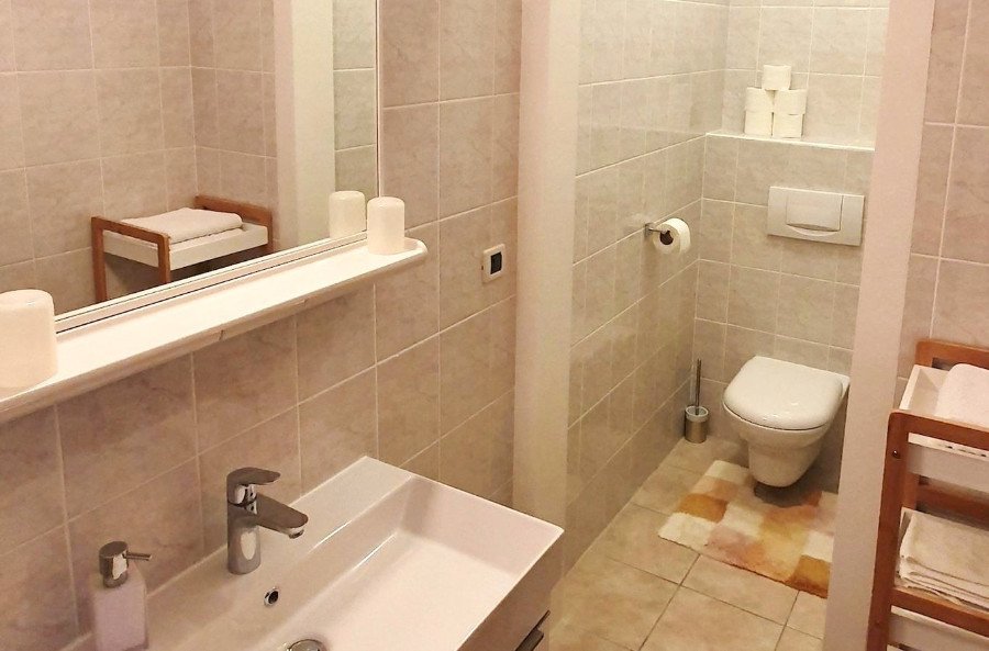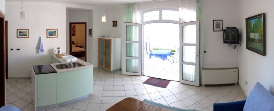 LOCATION: beach 40m, center 200 m, restaurant 150, cafe 150, grocery store 50m UNITS: AP 1/6 (3 x bedroom) , AP 1/5 ( 2 x bedroom) EQUIPEMENT: AC, SAT-TV, hairdryer, equipped kitchen Balkony , Terrace , seaview Parking: private + garage