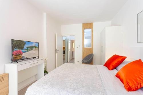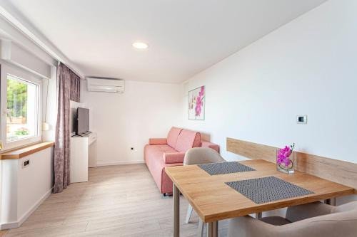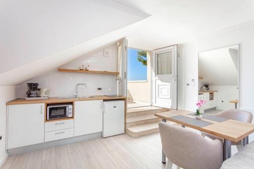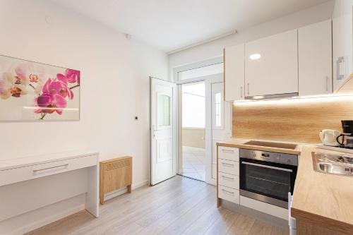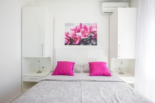 In this villa which is only 100 m from the beach and the center we offer 6 beautiful apartments. All apartments are very spacious, with open sea views Very neat house with good reputation. • LOCATION: Beach, center, restaurant, cafe, shop ... 100m • UNITS: Studio2 + 1, AP1 / 2, AP1 / 4, AP4 + 1, Ap2 + 2, AP3 + 1 • EQUIPMENT: air conditioning, SAT-TV, hairdryer, SEF, WiF i• balcony, terrace, sea view • Parking: private + garage