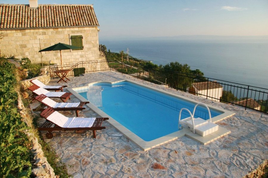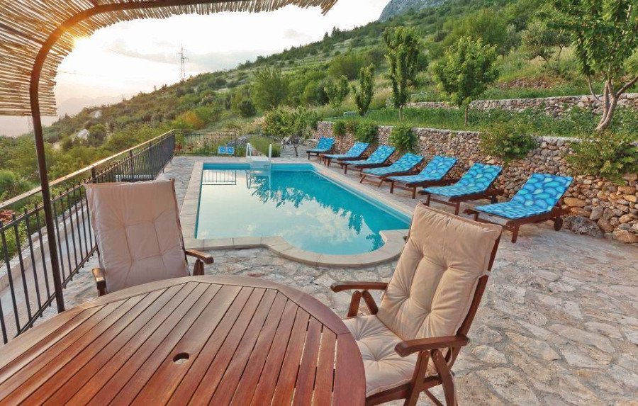 This preety stone villa is situated in Brela under mountain Biokovo . The guests staying here can experience the peace and quiet, yet be within easy reach of cities and beaches Everything what dalmatien houses had once, you will find in this villa. Fire place with large dinning table, Yard with well , outdoor eating/BBQ area complete with bread making oven. Each house ( there are 2) are composed of 2 bedrooms, kitchen/living, shower /wc with massage. And above all the swimming pool with magnificant view to the Adriatic sea and islands. All this ,together with high standard can make your holiday unforgetful.