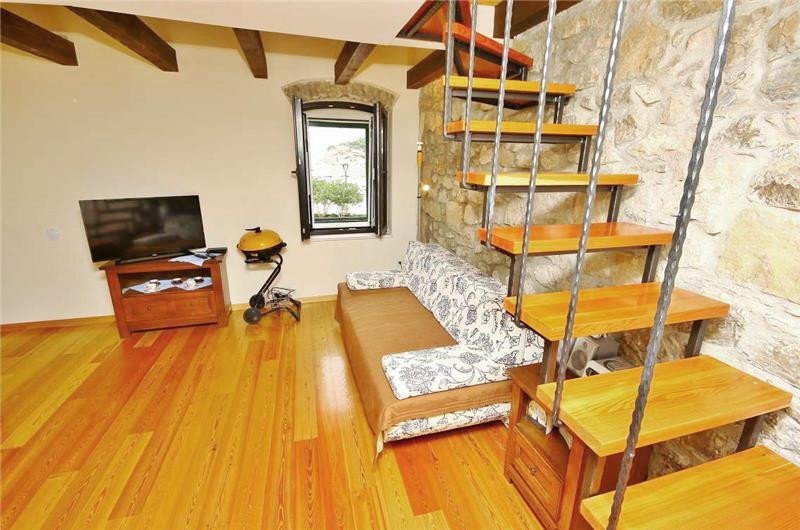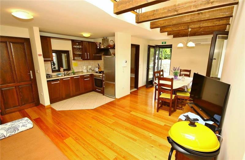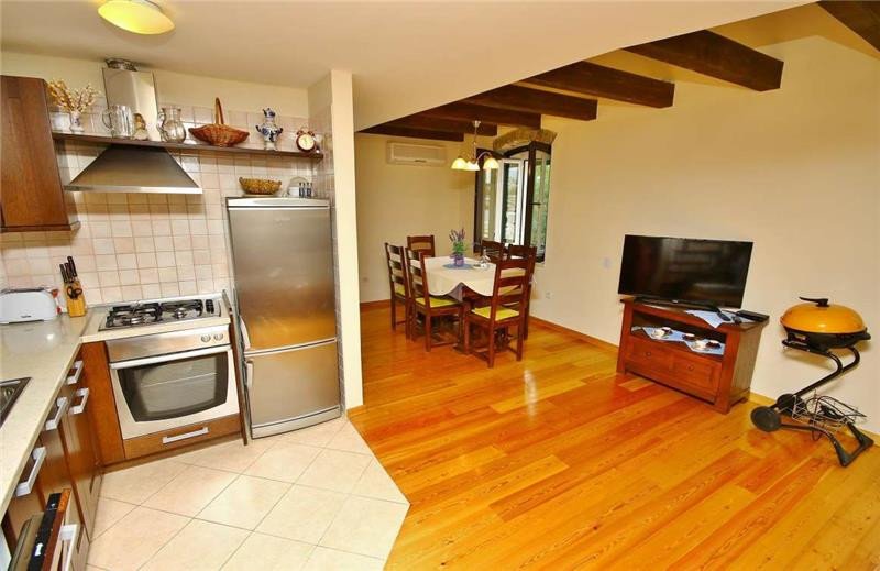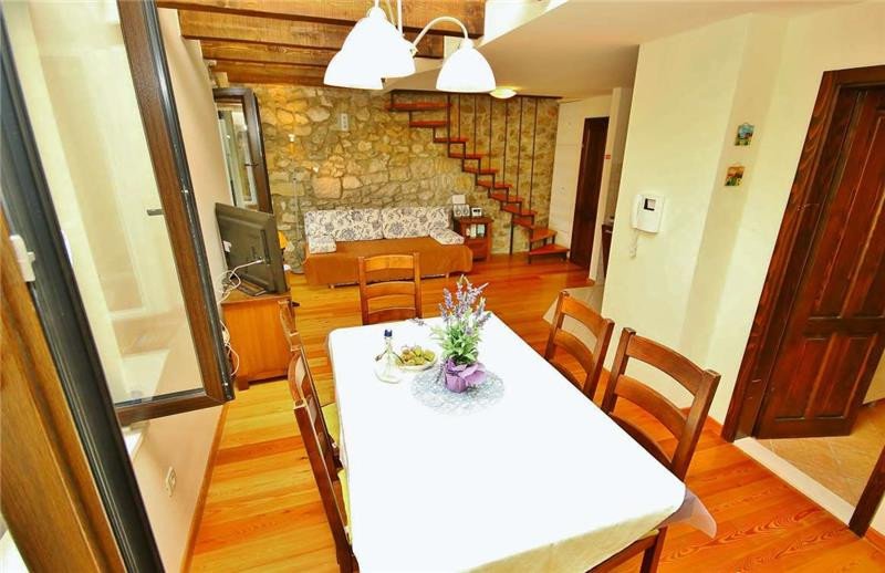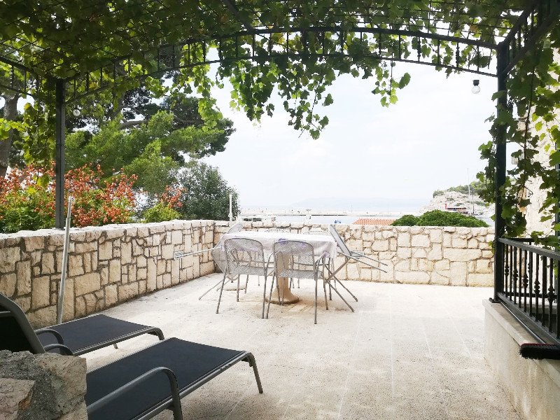 Very beautiful, small stone house that can comfortably accommodate up to 7 people. • Location: beach 50m, center 150m, restaurant 20m, shop 150 m • Rooms: 3 Bathrooms: 2 • terrace, garden, sea view • Parking: Private It is located on the waterfront in Makarska, from the nearest beach is 60m away. A large town beach (4km long) is a 10 minute easy walk away. The house has 3 bedrooms, 2 bathrooms, large living room with kitchen, garden and terrace with beautiful view Excellent accommodation for business people (excellent internet) as well as for all those who want to be in the center of summer events.